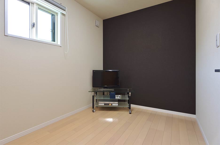 明るい色調でまとめた子ども部屋。 吹抜に面する飾り窓は、遊び心を添えるとともに階下とつなぐ窓口にもなります。