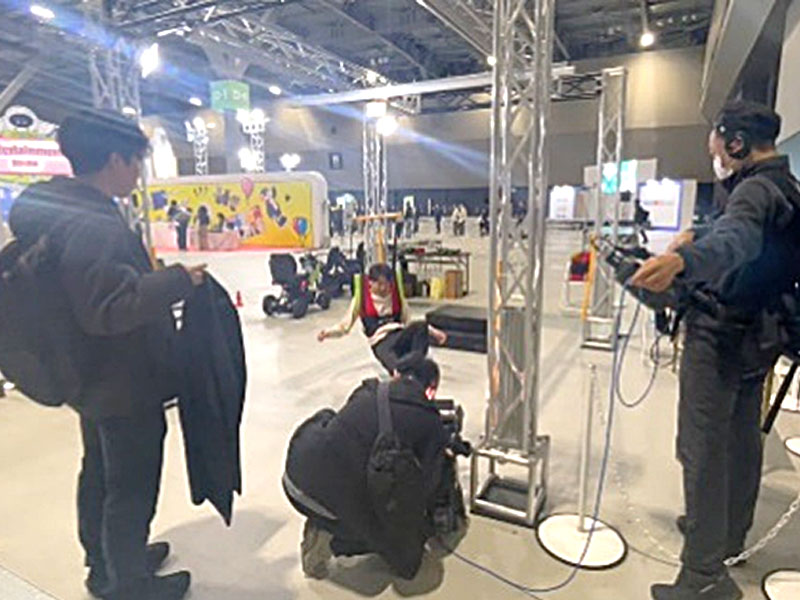 テレビ愛知 キャスターの石井俊大様を始め、お子様から大人まで、総勢1,000名の方に「寄り添いロボット」をご体験いただくことができました。中でも、お子さまにインラインスケートを使用いただいたシーンでは「安心して挑戦ができる」とご好評いただきました。