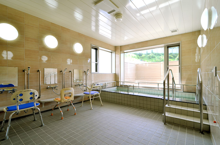 | 大浴場の横にリフト付きの機械浴室も併設。 高窓を設けて採光・換気にも配慮。 |